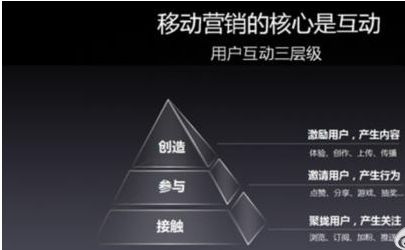 移動營銷可以分為三個階段:第一階段是移動營銷活動數據庫的采集,通過吸引用戶參加活動來采集目標消費者信息,如通過廣告、海報、傳單、促銷、短信抽獎等活動來引起消費者的注意;第二階段是通過“一對一”的用戶調查進行數據挖掘,如利用打折券或其他優惠吸引用戶;第三階段是建立移動社區社區(會員制)俱樂部,以此增加用戶忠誠度和提高用戶購買率。