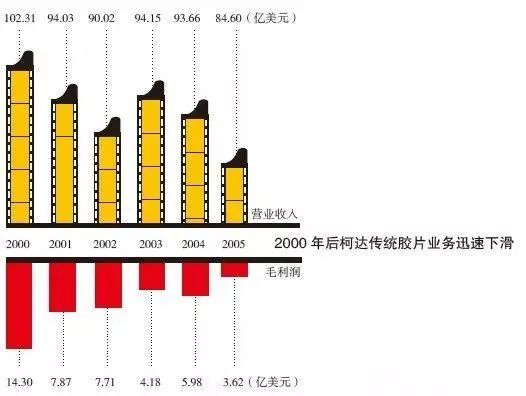 2000年以后,數碼技術促使了很多行業變革,數碼相機也得到了普及,佳能、尼康等日產照相機品牌抓住了這一時機,大規模地開發一系列的新機型。可是柯達依然一意孤行,執意投入在膠卷生產上,錯過了數碼技術這個風口。