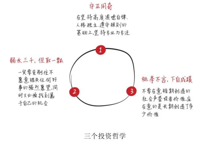 1、三個投資哲學:守正用奇;弱水三千但取一瓢,桃李不言下自成蹊;風物長宜放眼量,高筑墻,廣積糧,緩稱王;