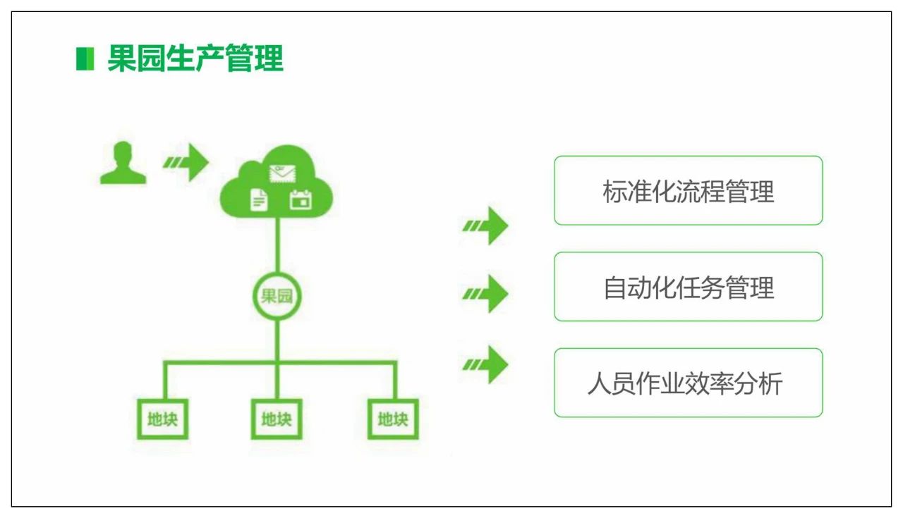 果園的智慧化應用模式:四情監測(墑情、苗情、蟲情、災情);果園生產管理(智能化控制,農業技術指導);品牌經營(品牌網站,電商交易平臺);生態休閑(果樹網上認領/周末果園);果品溯源(加工環節、庫存環節、運輸環節、零售環節)。