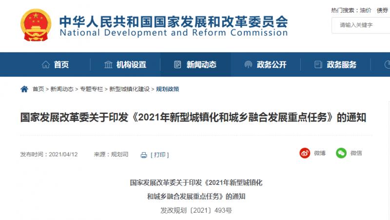國家發(fā)展改革委近日印發(fā)的《2021年新型城鎮(zhèn)化和城鄉(xiāng)融合發(fā)展重點(diǎn)任務(wù)》。