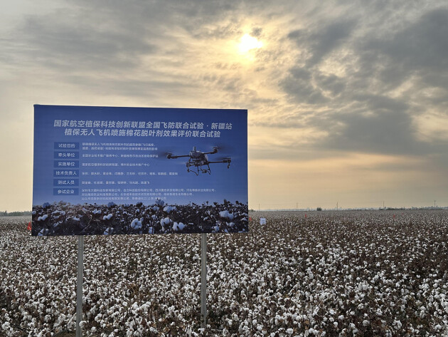 近日,國家航空植保科技創新聯盟在新疆博樂市烏圖布拉格鎮塔特勒根村開展“植保無人飛機噴施脫葉催熟劑效果評價聯合試驗”現場評價會。